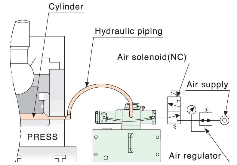 1.La presión hidráulica (P) y la presión de aire (Pa) del protector de sobrecarga, deben elegirse lo más alto posible.